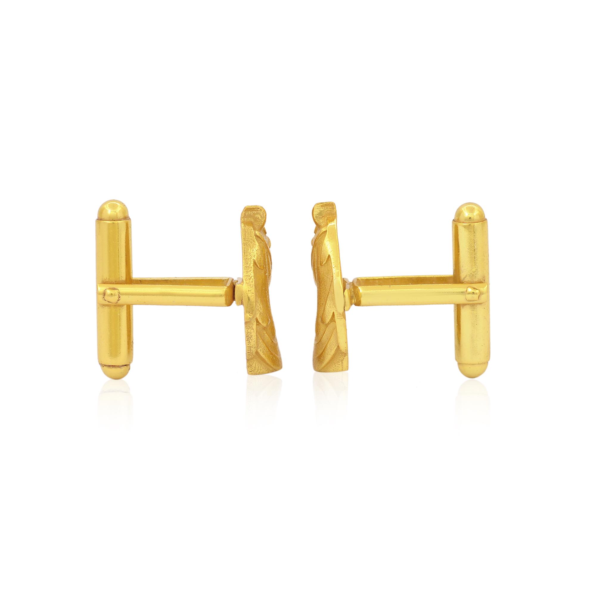 These 3-dimensional horse cufflinks have been meticulously engraved. Finished with a gold tone and enamel detailing.