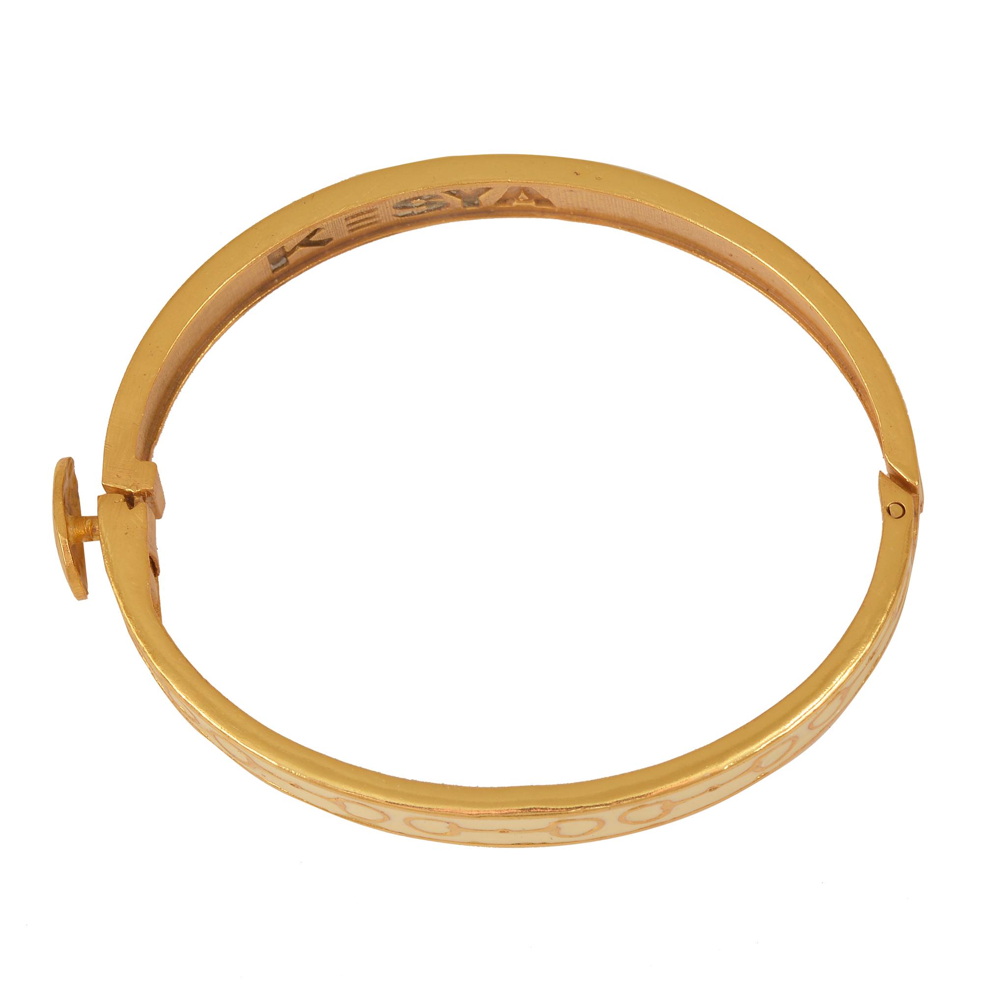 Our classic bracelets are crafted in brass and generously plated with 22ct gold. The snaffle motif is hand enamelled.